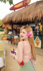จึงเป็นสิ่งที่เธอรับหมดไม่สนลูกใคร ยิ่งมาใน ชุดว่ายน้ำ เซ็กซี่ ก็คือมีเสน่ห์เป็นเอกลักษณ์มาก จีสตริง วันพีช ทูพีช หรือ บิกินี่ ก็โดดเด่น อย่างรูปโปรไฟล์ Facebook เป็น ชุดทูพีช 2 ชิ้นสีขาว คล้องคอผูกโบ มีผ้าโพกแล้ววิวเป็นทะเลอีก เหมาะสมไปหมดเลย