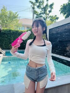 แต่เธอก็ได้ปล่อยภาพเรียกน้ำย่อยให้แฟน ๆ ได้ตาลุกวาวกันไปบ้างแล้ว กับลุคสุดน่ารักปน เซ็กซี่ ใน ชุดว่ายน้ำ ทูพีช ที่แม้จะมีการใส่กางเกงยีนขาสั้นคลุมทับไว้ท่อนล่าง แต่ความแซ่บของเธอก็ยังทะลุออกมา มีรูปร่าง ผิวขาว ออร่า ตัวเล็ก อกโต ท่าเต้น ลีลาเด็ด สวยแอบแซ่บ กันเลย